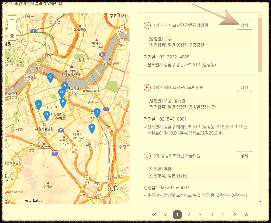 - 검진기관명을 입력하여 검색도 가능