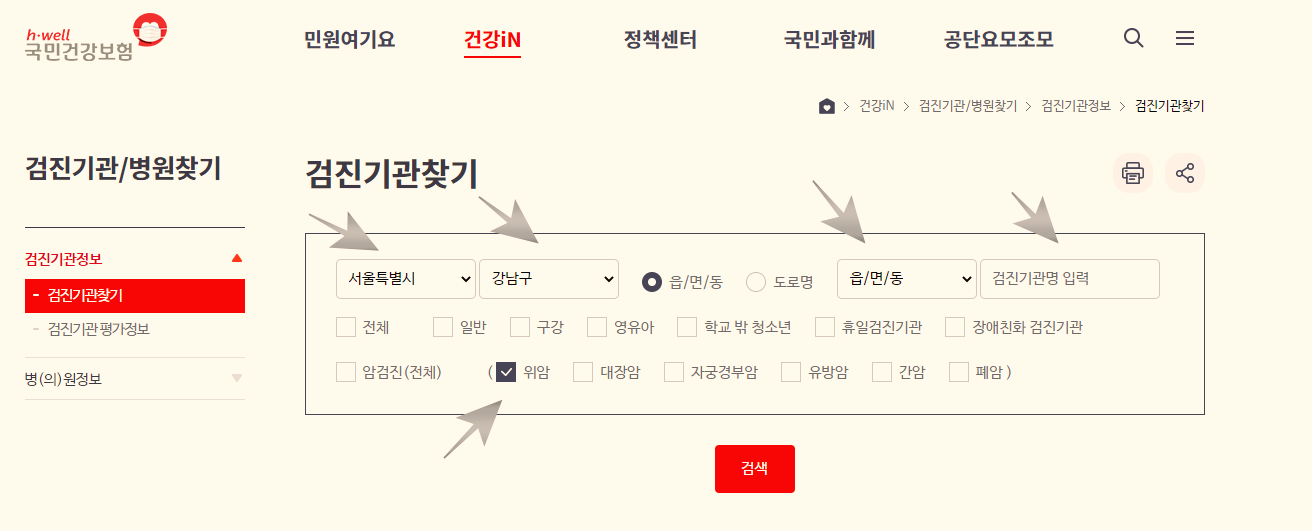 국민건강보험 사이트를 이용한 일반 검진, 암 검진 지정 병원 찾기